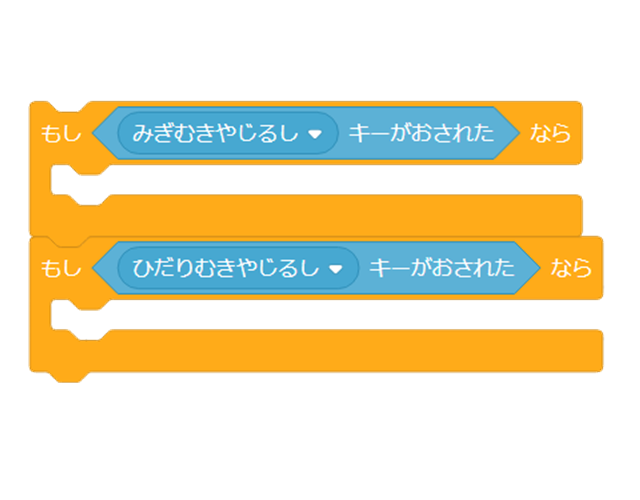 「もし右向きキーが押されたなら」のパワーアップ版、**「もし~なら、でなければ」**というブロックも使ってみましょう。