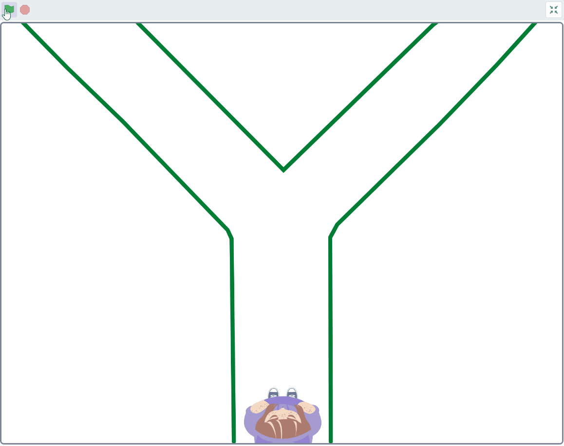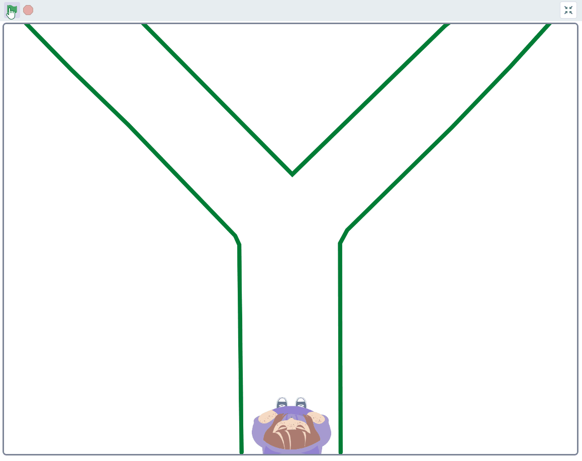 ステージに、上が二股に分かれた「Y字路」を用意しました。Tatianaのスタート位置は、画面の一番下(X:0、Y:-170)です。