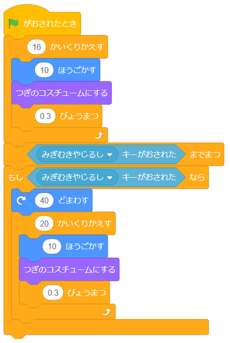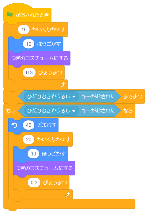 これで、キャラクターを自由に操るための「3大要素(順次・繰り返し・分岐)」がすべて揃いました。